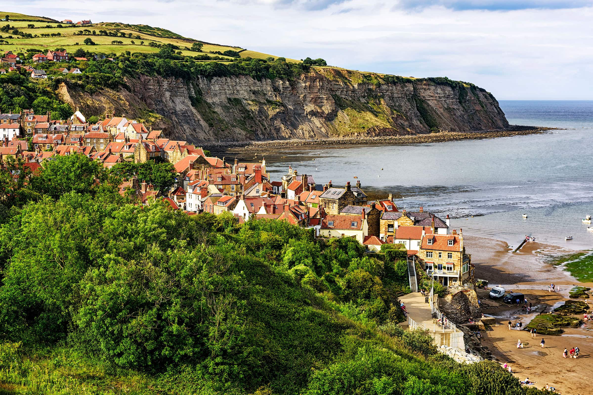 Robin Hood’s Bay, on England’s east coast, is where the Coast to Coast Walk ends. A Yorkshire fishing village on the border of North York Moors National Park, Robin Hood’s Bay is a destination in its own right, attracting visitors in the summer for its sandy beaches and rock pools filled with fossils. The village is the picture of seaside English charm, with cobblestone streets, plenty of cafes and pubs, and historic cottages that cling to the cliffsides.