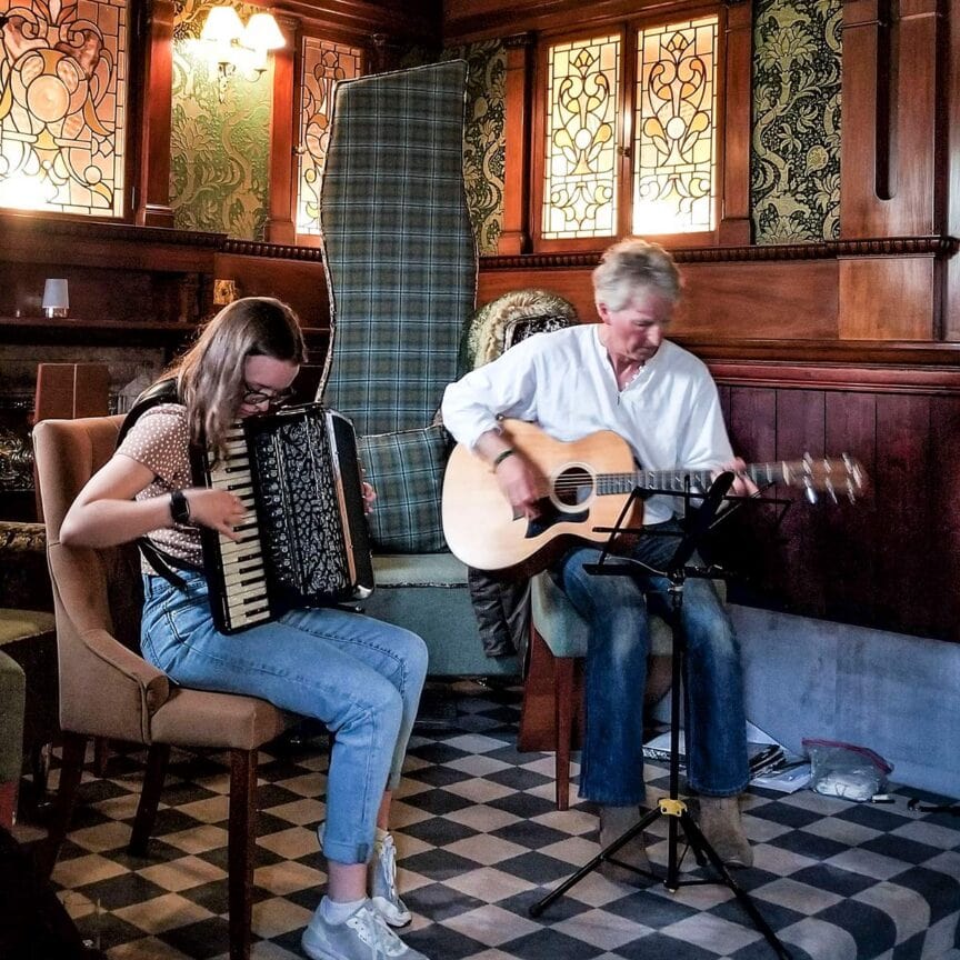 And all too soon, our trip to the magical highlands and islands came to an end with a special musical performance by Katie Douglas (on accordion) and Iain Smith (on guitar) who serenaded us with jigs and waltzes and reels as well as a moving rendition of “Caledonia,” which brought our guide, Cory, to tears.
