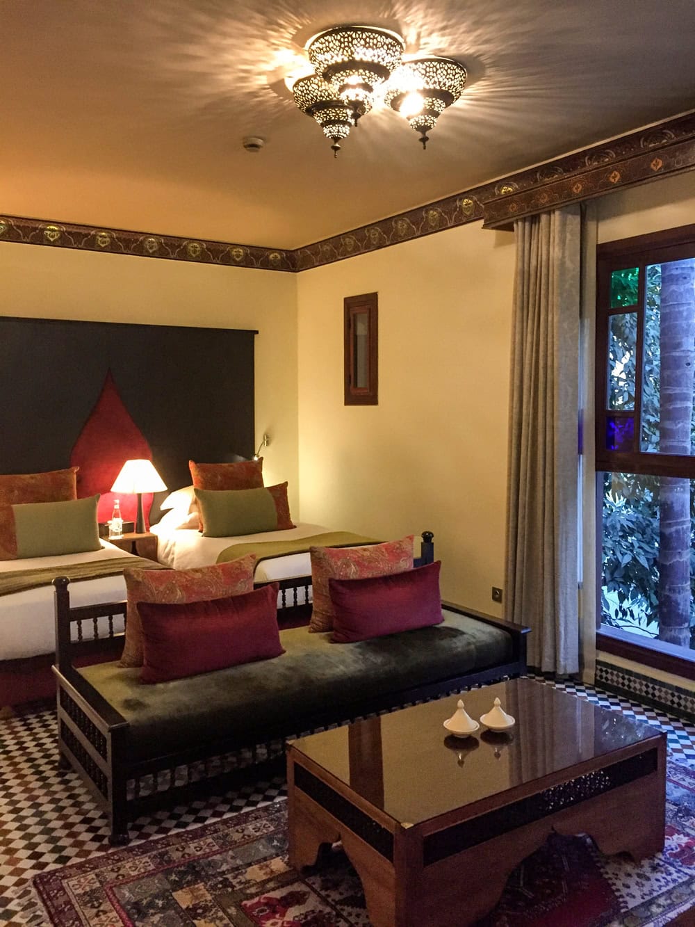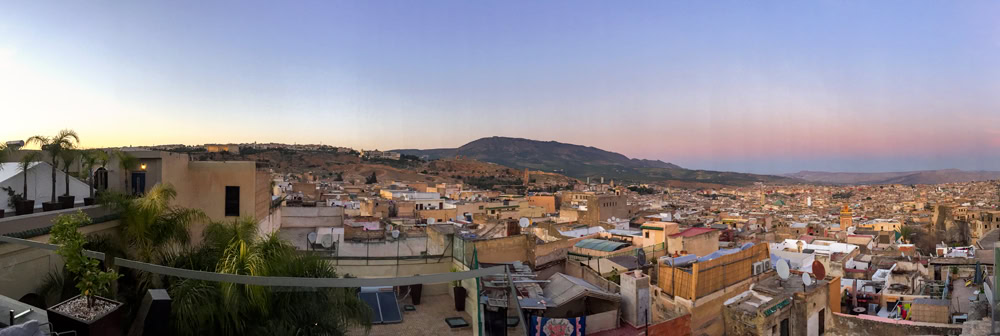 We stayed two nights at Riad Fes, an impeccably renovated riad, with beautiful interiors and stairways that wind their way through the many annexes that make up the complex. We enjoyed the views of the medina and listened to the mesmerizing call to prayer from the outdoor rooftop.
