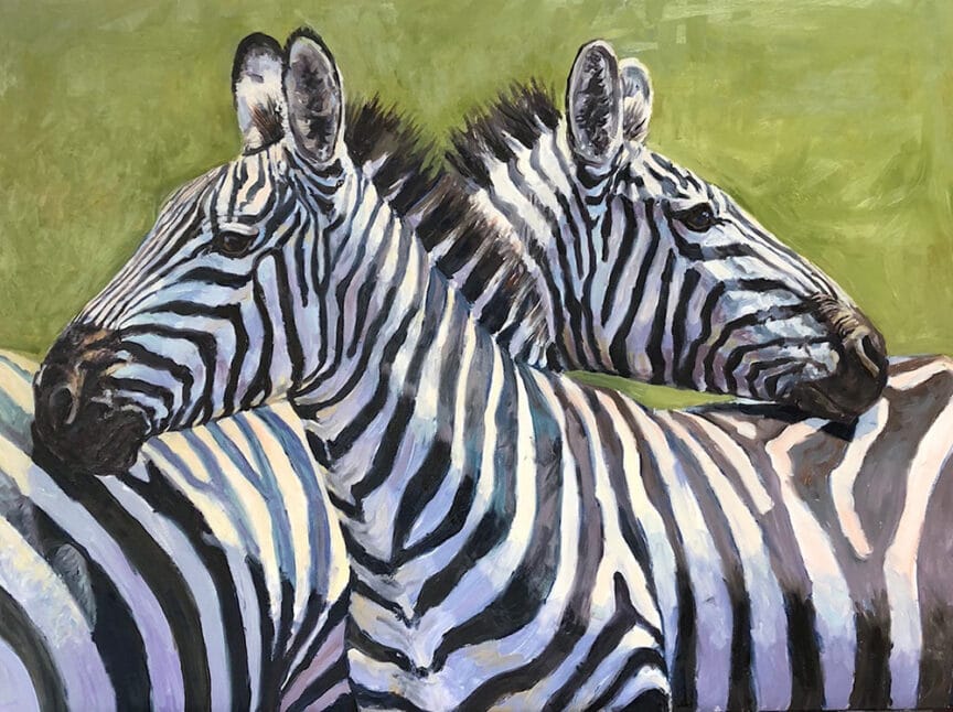The Serengeti Wildlife Safari with Wilderness Travel was the trip of a lifetime and will serve as my artistic inspiration for years to come. I am a painter and animals are my passion. For years I have painted domestic animals with wildlife being limited to an occasional white-tailed deer, osprey, or songbird. On our safari, I took over 2,000 photographs–our guides went above and beyond to offer us incredible photographic opportunities. The pictures I’ve used as references for painting are focused on connections between animals.