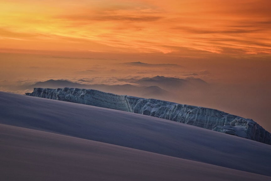 Reaching the summit of Kilimanjaro was a true highlight of my life. To push yourself and work so hard for something and be rewarded with this vibrant sunrise over clouds and glaciers in the distance is a feeling that is difficult to put into words. A truly transformational experience.