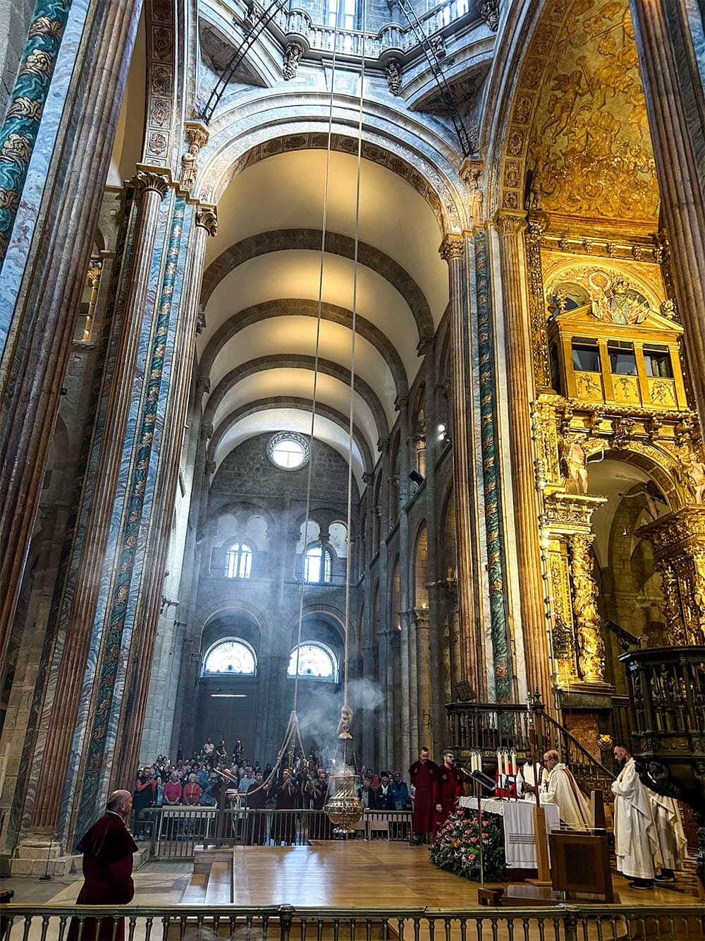 We were fortunate to see the Botafumeiro incense ceremony during Mass, which is truly an unforgettable experience.