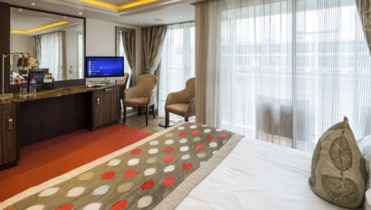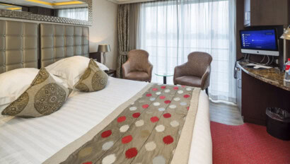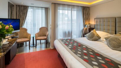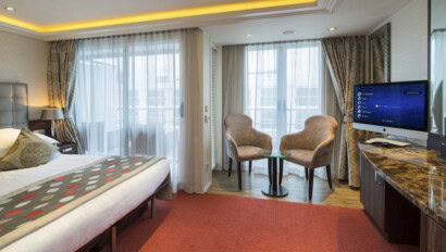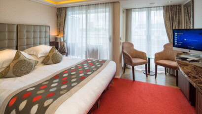 The 164-guest AmaCerto is Inspired by classic ocean yachts, and provides the most distinctive river cruise experience. A magnificent glass elevator is one of the unique design elements found onboard, as well as our exclusive Twin Balconies. The beautifully-decorated and spacious accommodations range in size up to 350 square feet. Relax in a heated Sun Deck swimming pool with a “swim-up” bar or enjoy Chaîne des Rôtisseurs culinary creations. The ship also features a fitness center, spa, and beauty salon. The ship carries a fleet of bicycles and safety helmets free for you to use. The bicycles let you venture out and explore the riverside bikeways or meander through quaint cobblestone streets. The bikes are set up and ready for use as soon as the ship docks. Thanks to the computer provided in your stateroom and high-speed Internet access plus Wi-Fi, you can stay connected with friends and family back home. The exclusive movies-on-demand system offers Hollywood's current releases and a selection of classic films. You'll also enjoy a variety of English-language news, sports and satellite TV stations, as a selection of music channels. It's all available on your flat-panel TV, and it's completely complimentary.