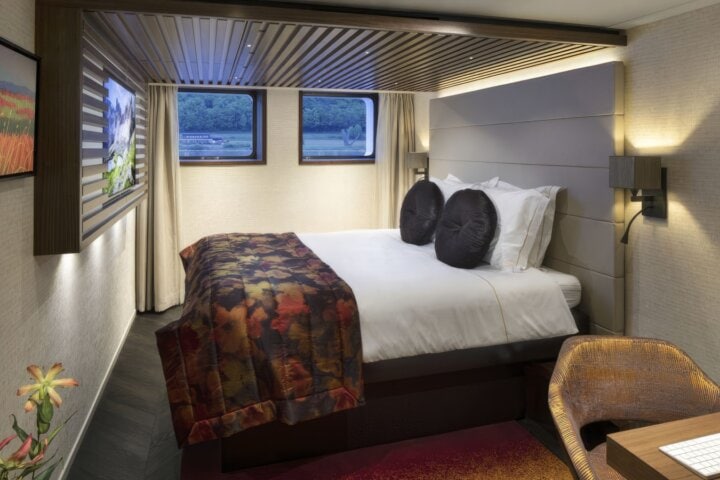 Launched in 2019, the 196-passenger AmaMagna surpasses other boats in its class with its spacious accommodations and public spaces, including 98 staterooms and 53 suites. Staterooms range from 205 sq. ft. (with fixed windows) on the lower deck to 252-474 sq. ft. with an outside balcony on the main and upper decks. Like other AmaWaterways ships, in-room temperature control, flat-screen TV/computer, Entertainment on Demand system, and complimentary Internet and Wi-Fi are among its amenities. A sundeck pool and whirlpool allows guests the option for a refreshing dip while enjoying the views, and there are four dining options, five bars, an expansive wellness area, and an intimate sundowner boat for evening excursions.