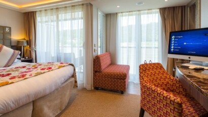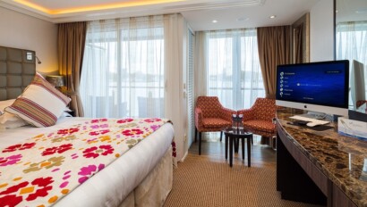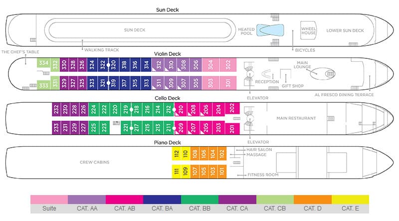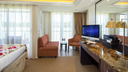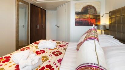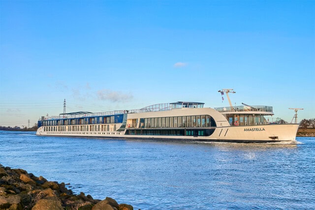 A sister ship to the AmaSerena and AmaPrima, the 156-passenger AmaStella debuted in 2016 and features the most advanced design of any river cruise vessel currently in operation. The exclusive "Twin Balconies" are available in most staterooms that measure a spacious 210-235 sq. feet, and four suites measuring 350 sq. feet. Passengers enjoy gourmet dining with free-flowing fine wines at multiple onboard dining venues; a heated sun deck swimming pool with a "swim-up" bar; fitness center and spa; complimentary ship-wide Wi-Fi and in-room Internet and entertainment on demand; and a fleet of bicycles carried on board for passengers to enjoy on their own or on guided bike tours.