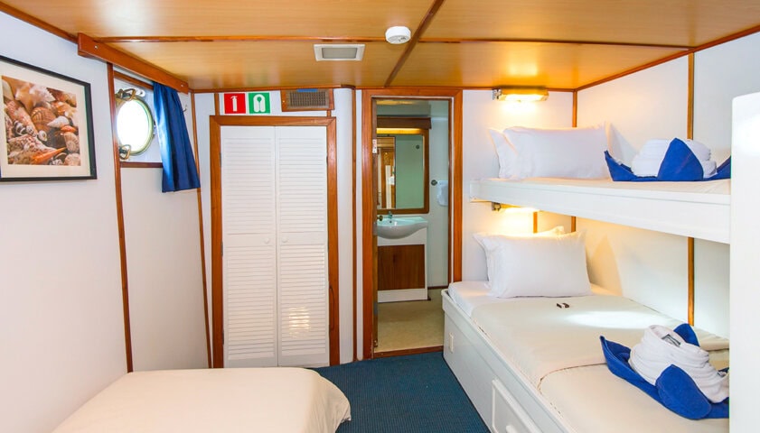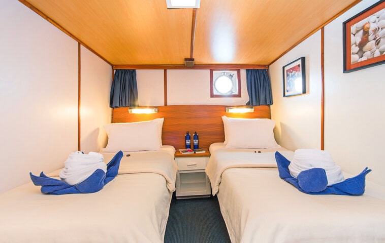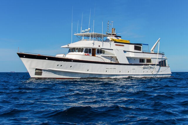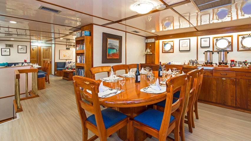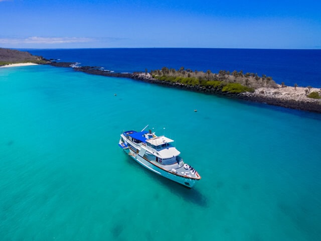 Traveling by yacht is the most authentic way to see the Galápagos Islands and a voyage aboard the 16-guest Beluga is one of the most comfortable experiences possible. The motor yacht is fully air conditioned throughout, spacious and comfortable, and features panoramic windows in the salon, which is equipped with games, a TV, books, and a cozy seating area, as well as a dedicated dining area. The Beluga’s vast deck spaces provide its guests with breathtaking ever-changing views. The seven double cabins and one triple each feature either a queen or two twin beds and have a private bath with hot showers and security safes. The Beluga has a crew of 10 including a multilingual naturalist guide.