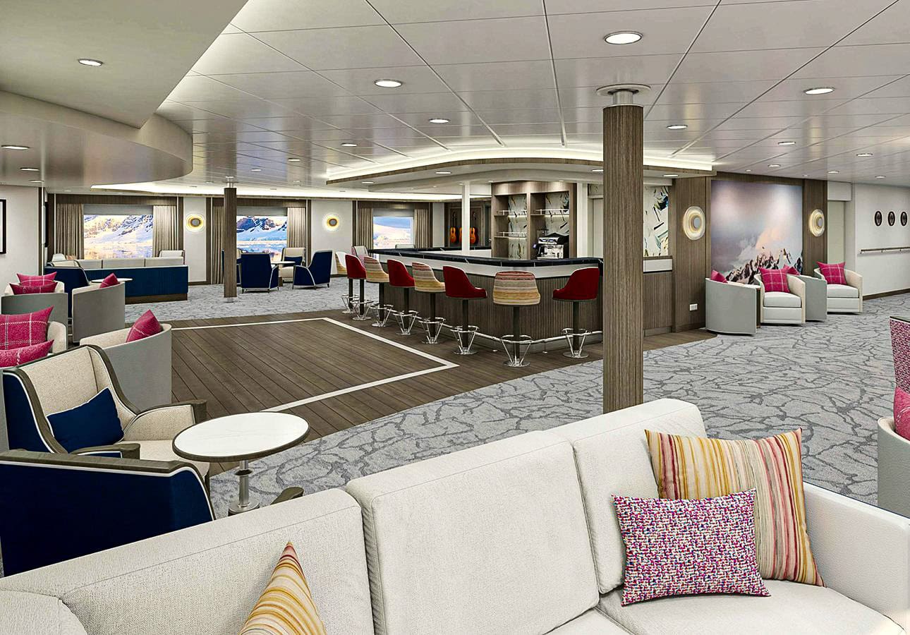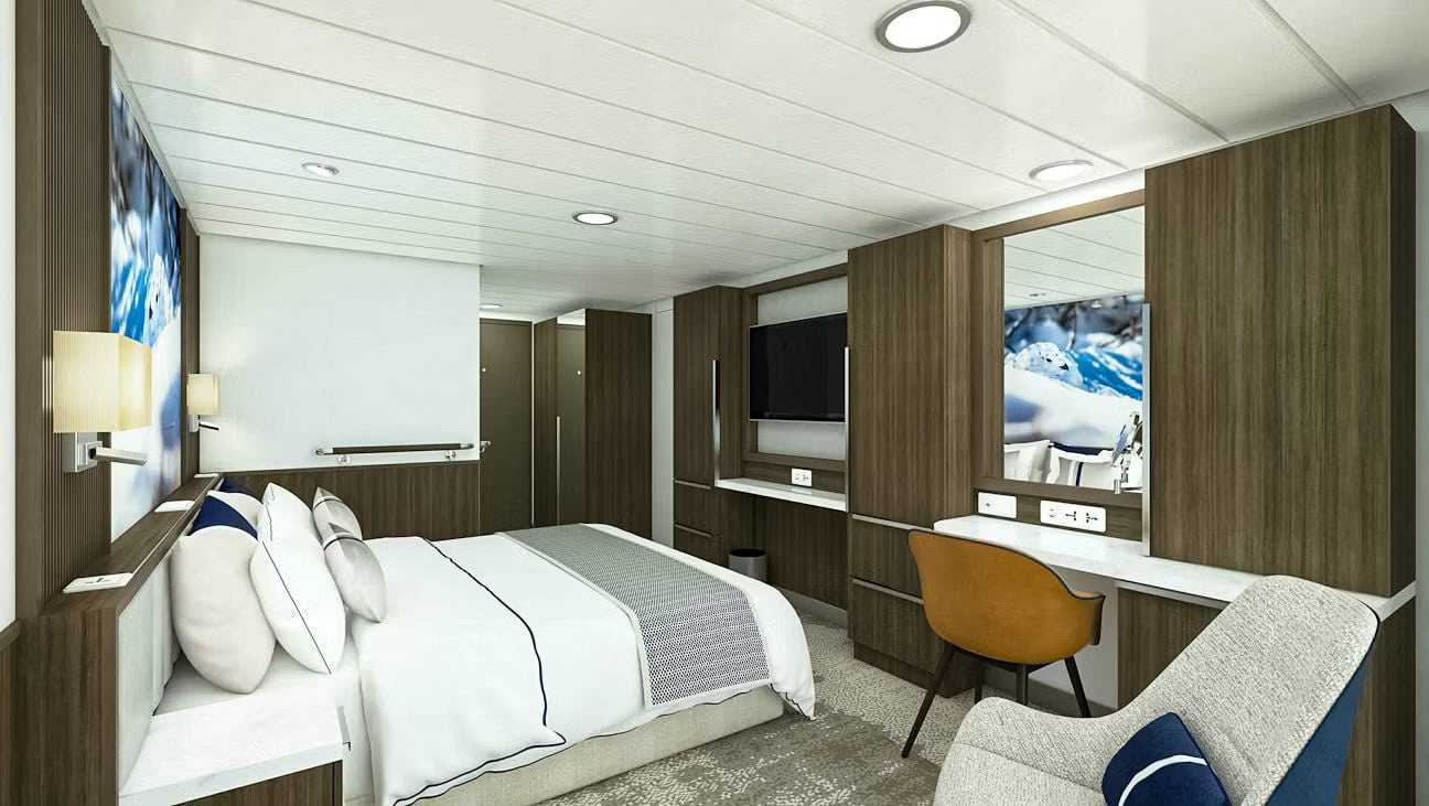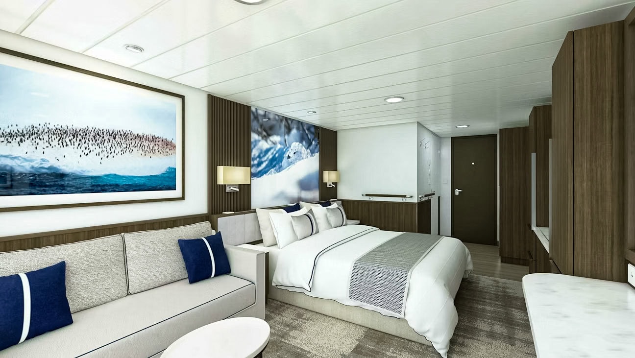Named after the legendary Australian geologist and explorer, the new, state-of-the-art ship Douglas Mawson is built for adventure and carries 130 guests on its expedition cruises. Public spaces include a lecture theater, library, two restaurants, and multiple observation areas with floor-to-ceiling windows. Relax in comfort while watching for wildlife and enjoy the breathtaking landscapes unfolding before you. Or, visit the Citizen Science Centre and Lounge, where you can learn more about the world from your onboard naturalist and Expedition Team. There’s also a swimming pool, Jacuzzis, gym, and sauna. An activities platform makes boarding the Zodiacs as quick, efficient, and safe as possible, minimizing wait times and getting you closer to the action for longer. The Douglas Mawson features 11 different types of staterooms and suites, including a range of spacious single berth staterooms.