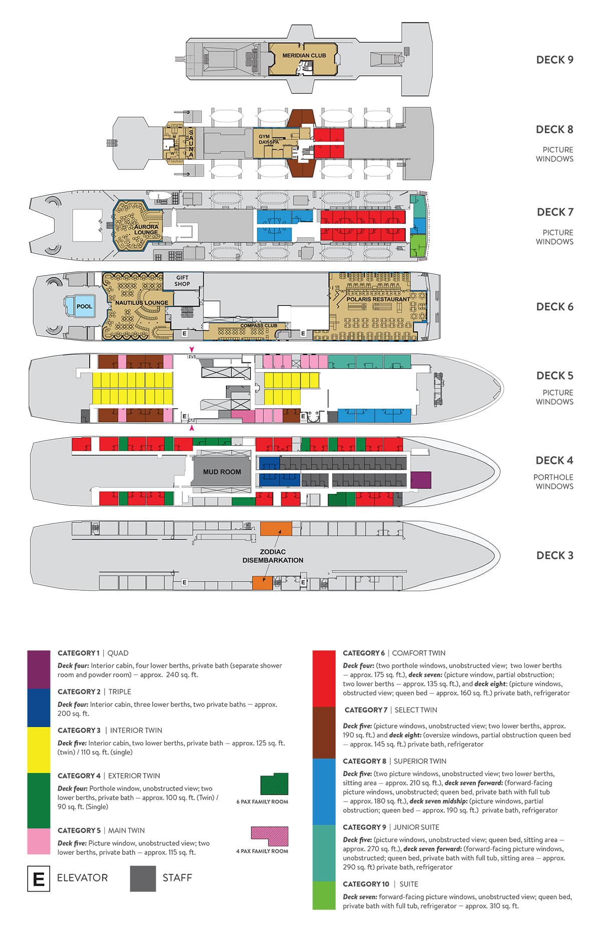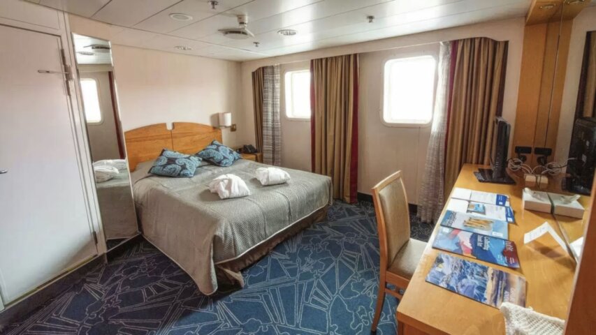 The 198-passenger Ocean Endeavour is designed to bring passengers to remote environments in comfort, and is outfitted with 20 Zodiacs, advanced navigation equipment, and a top-deck observation room. All guest cabins include a private bath with shower, comfortable beds, and a flatscreen TV. Guests enjoy meals in the ocean-view restaurant that offers buffet-style breakfast and lunch, while dinner is served a la carte. Other amenities include three comfy lounges, a library, gym, sauna, swimming pool, and saltwater hot tub.
