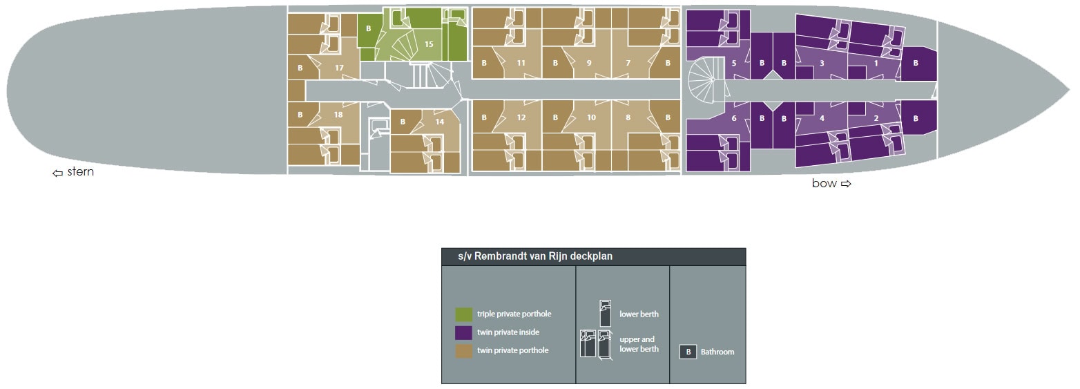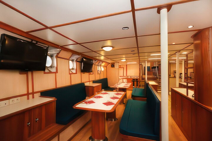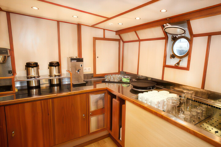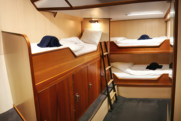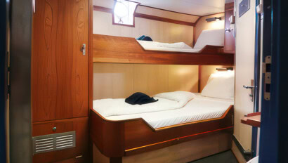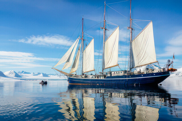 Originally built as a herring lugger, this sturdy vessel was rebuilt as a three-mast passenger sailing schooner in 1994, and underwent a complete refurbishment in 2011. With 16 cabins, she has a passenger capacity of 33 and a staff and crew of 12. Well-suited to sail in the Svalbard and Greenlandic waters, her communication and navigation equipment has been completely renewed according to the latest SOLAS regulations. Simple but tasty meals of international cuisine are served buffet style in the dining area, and small but cozy cabins each have a porthole and private shower and toilet. With ample open deck space for wildlife viewing, the Rembrandt is ideal for cruising among small islands and into hard-to-reach nooks and crannies. There’s also a bar, sitting area, and reading area, and she carries two Zodiacs for onshore excursions.