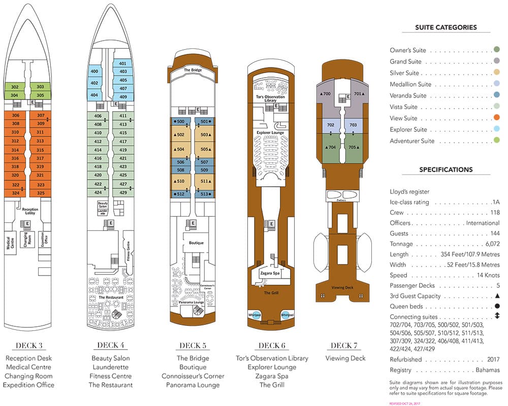 The Silver Explorer, a purpose-built expedition ship with the intimate onboard ambience of a private yacht, has been designed specifically for navigating waters in some of the world's most remote destinations, including both of earth's polar regions. With a fleet of Zodiac boats, her 132 guests can visit even the most off-the-beaten path locations while an expert Expedition Team provides insight and understanding. Amenities include ocean-view staterooms with private bath, a spacious library with an Internet café, a full-service spa, beauty salon, fitness center, live evening entertainment, and two top-deck whirlpools. A strengthened hull with a Lloyd's Register ice-class notation (1A) for passenger vessels enables Silver Explorer to push through ice floes with ease.