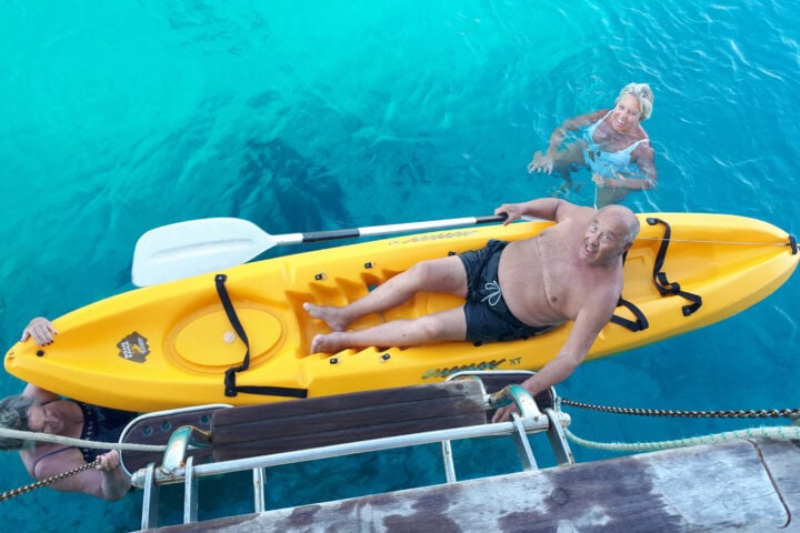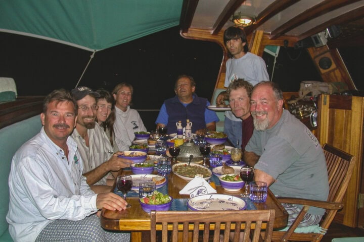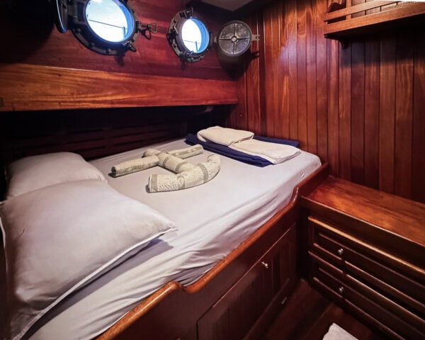 The Cavurali, a classic 65-foot, single-masted yacht is ideal for groups up to six people. The yacht features four cabins with private bathrooms (two cabins have single beds and two have double beds). Spacious decks provide comfortable outdoor dining and lounging. Full air-conditioning is available, but the Cavurali’s natural ventilation is usually sufficient even during hot days and many trip members enjoy sleeping on the deck under the stars. Four ocean kayaks (three single, one double) are available for exploring. The Cavurali has a crew of three.