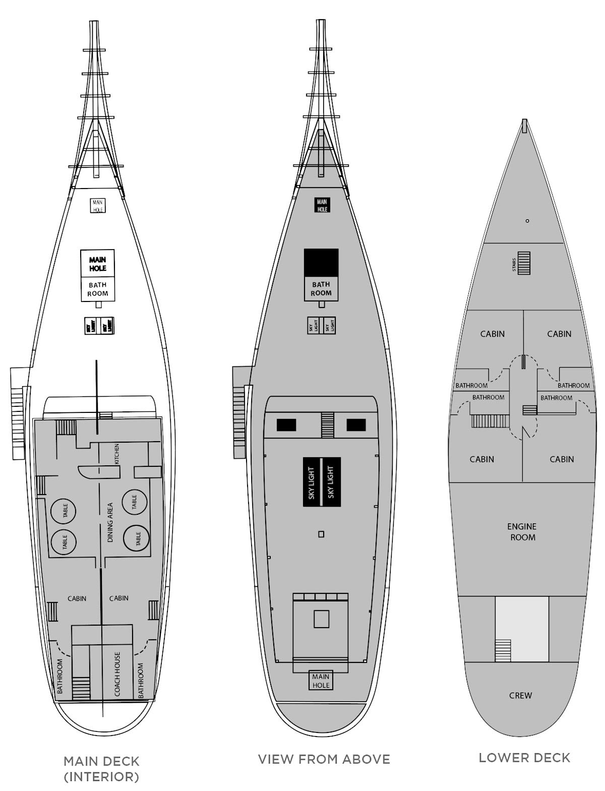 Our vessel is a double-masted traditional Indonesian sailboat that offers the unique opportunity to explore the incredibly remote, unique, and mystical Raja Ampat archipelago. The boat was built in Sulawesi in 2000 out of Indonesian hardwoods and is 100 feet long with a 21-foot beam. While not luxurious, she is comfortable and well maintained. There are six double cabins with en suite bathrooms, individually controlled air-conditioning, and electricity 24 hours a day. The boat is very sturdy and stable, whether still or under motor. The boat's crew is attentive, experienced, and helpful, and many have worked on the boat for years. Note: There are four cabins below deck, and two cabins on the main deck (where the dining room and common areas are located). Please note that the cabins below deck require descending steep stairs/ladders, and that the cabins above deck are slightly smaller. Cabin assignments will be pre-determined in the most democratic way possible.