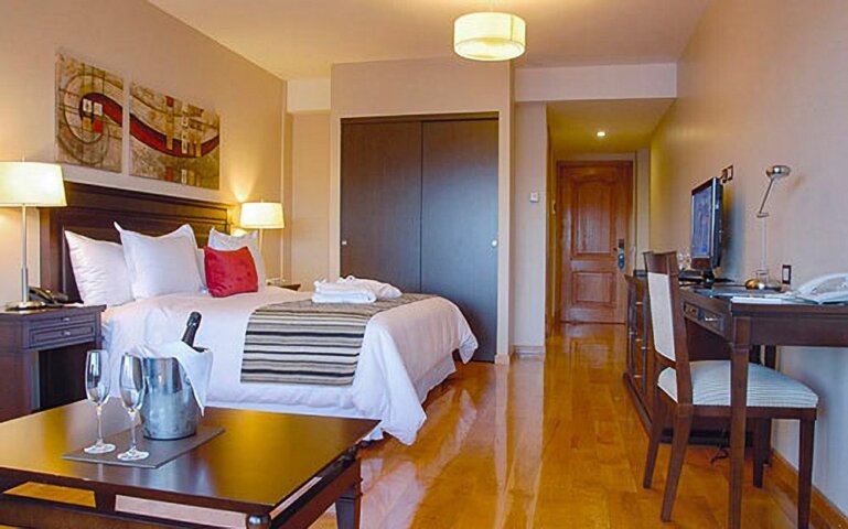 Nestled on the shores of Nahuel Huapi Lake, the Alma Del Lago Suites features panoramic lake and mountain views. The location is an ideal 10-minute walk to Bariloche's town center, making it easy to stroll to restaurants and shops. Many of the comfortable guest rooms look out over the water, but one of the best places to soak up the scenery is from the lobby and lounge with floor-to-ceiling windows. If you want to unwind after a day of hiking or kayaking, the spa offers facials, massage, hot stones, and reflexology, and there is also an indoor pool and hot tub. The Terra Restaurant serves a buffet-style breakfast that can be enjoyed indoors or out on the deck, and the Mitico Bistro is a great place to grab a quick bite and a cocktail.