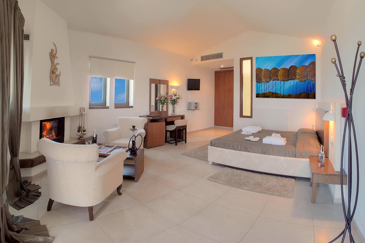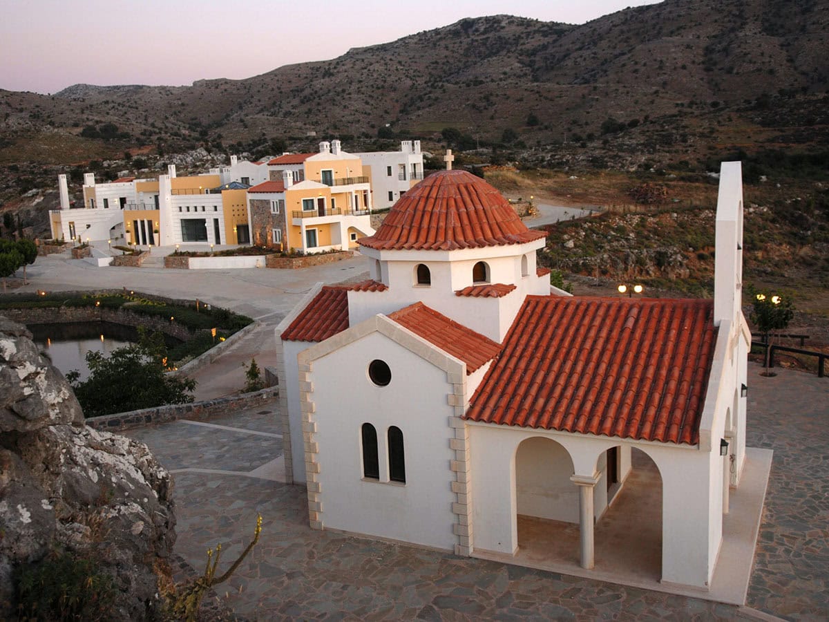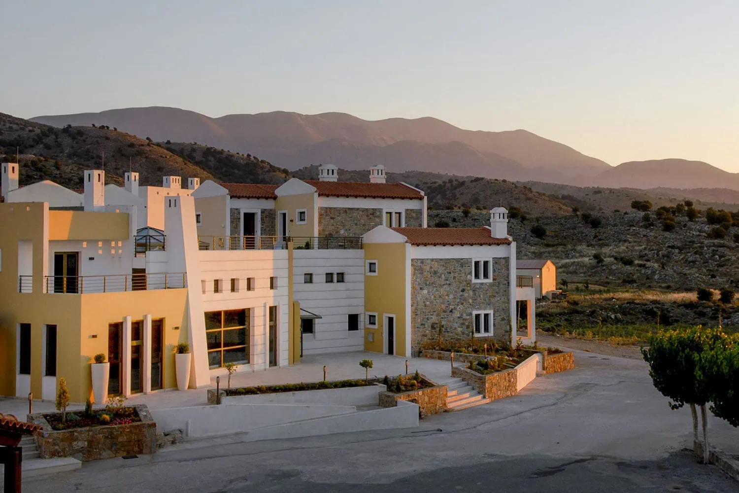 Set on 28 acres and just a half-mile from Anogia village, the Delina Mountain Resort has 13 guest rooms, each with a cozy fireplace and a veranda for panoramic views of Mt. Psiloritis and amazing sunsets. There is a tavern-style restaurant on site. Local Cretan musical performances are often hosted.