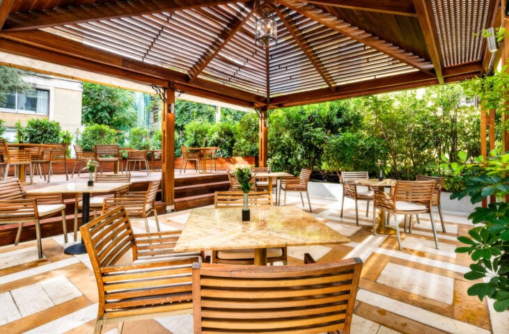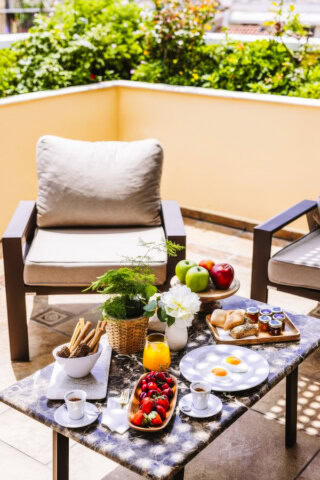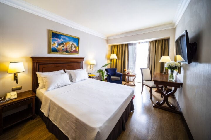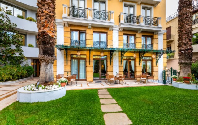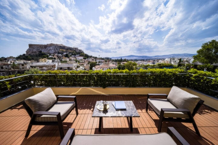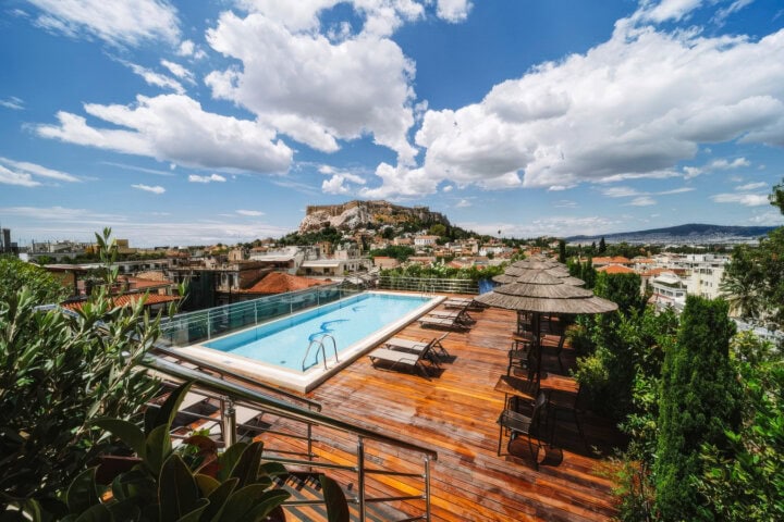 With an ideal location in the center of the Plaka, this hotel is the perfect introduction to Athens. Guest rooms are spacious and quiet, with nice views of the area. For full panoramas of the city, head to the rooftop, where sweeping vistas of the Acropolis seem so close you can almost touch it. The hotel also has a rooftop pool and restaurant, as well as a spa and fitness center.
