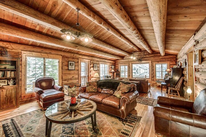Located in a remote and beautiful setting outside Jackson Hole, Flat Creek Ranch offers five "rustic luxury" log cabins with creekside or lake views, antique claw-foot bathtubs, and wood-burning stoves. The historic cabins are well appointed, clean, and comfortable but not necessarily fancy. The main lodge, with its front porch overlooking a lake, has a large living room anchored by a stone fireplace and a piano. The lodge's kitchen is supplied with local, organic meat and produce whenever possible, including fresh greens from the garden. Half-day horseback trail rides are offered on rugged mountain trails, and fly fishing and hiking are equally popular activities.