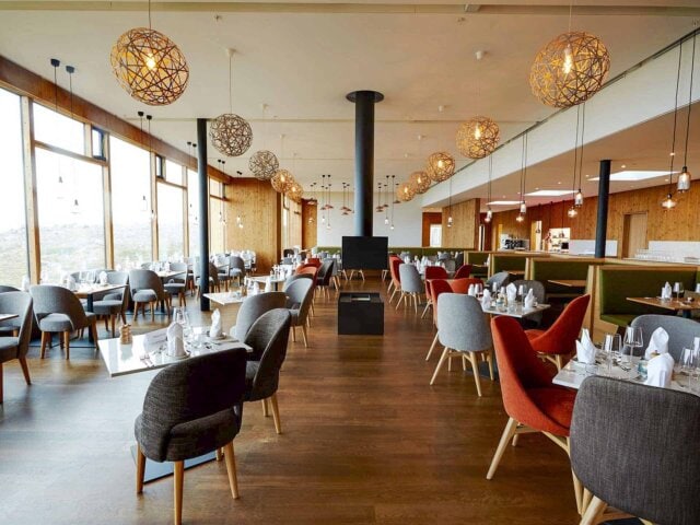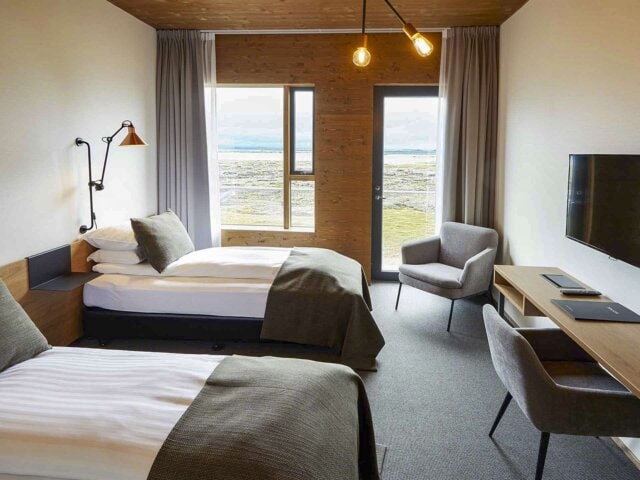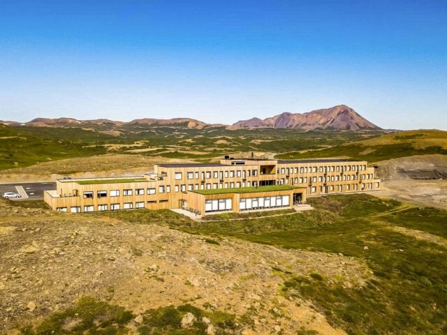 Fosshotel Mývatn was designed by award-winning architects and uses low-environmental impact materials, including larch wood and a grass roof that blends in with the surrounding nature. Inside, guests will find a nice lounge, bar, and restaurant, all with fantastic views. Guest rooms incorporate wood and brass furnishings for a sleek design. Be sure to grab a drink at the bar and enjoy the view of the lake from the restaurant or terrace.