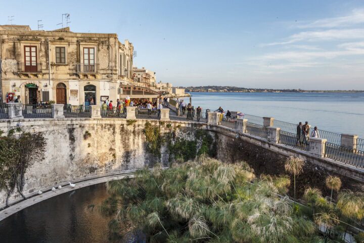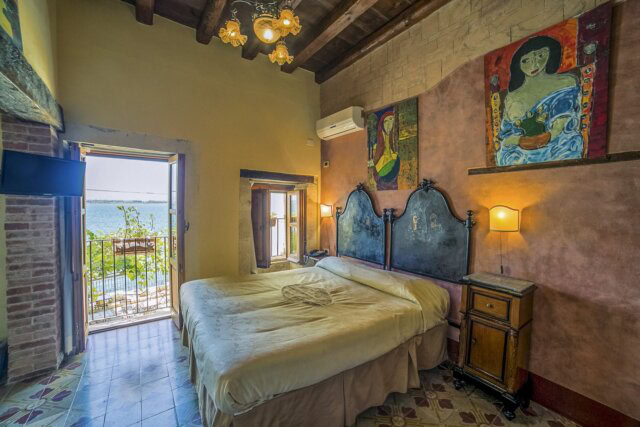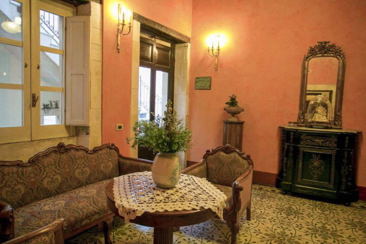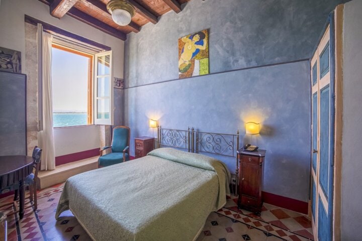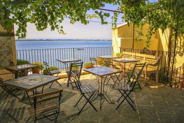 Featuring original antique furniture and beautiful flooring by Sicilian artisans, this hotel is more like a museum. Originally built in the 19th century, the building faces out onto the Gulf of Ortigia, with lovely patios and a large veranda to savor meals. Inside, guest rooms are individually decorated with stone and wood accents, and each has wonderful views over the bay or city. Breakfast features a wide selection of dishes including bread, juice, coffee, and tea. Vegetarian and vegan are also available, as well as gluten-free products. If the weather is nice, be sure to enjoy a meal outside beneath an arbor of grapevines—the vistas are spectacular!