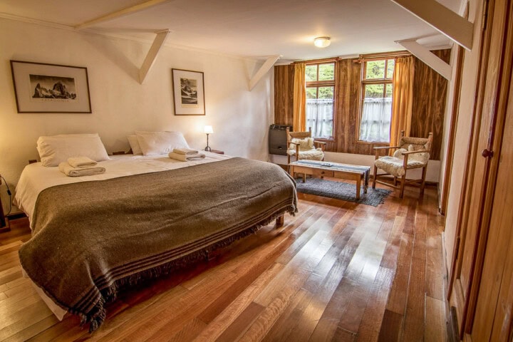 With a perfect location on the edge of Los Glaciares National Park, El Pilar is a picturesque 10-room country inn offering unparalleled access to the trailheads of the park's most iconic hikes—and we have this charming property reserved exclusively for our group! Guest rooms are simple and cozy, and there are phenomenal Fitz Roy views right from the dining room. It's a great place to relax after our hikes, welcomed in with a roaring fire and a glass of hearty wine. Our hosts, Guillermo and Cristina, offer warm hospitality and delicious home-cooked meals.