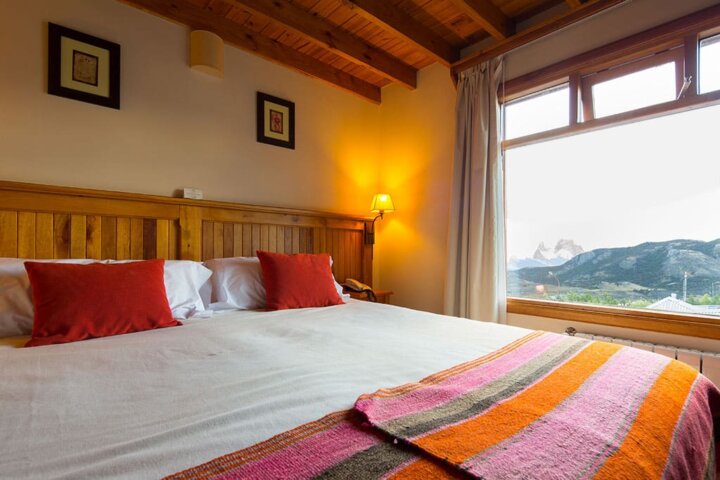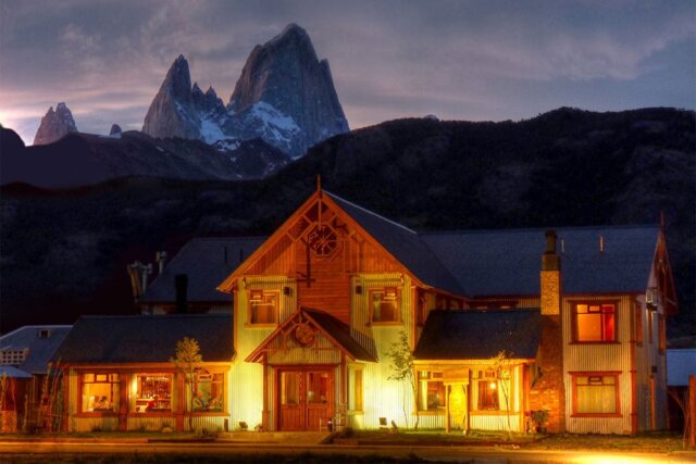 This rustic and cozy inn has a friendly staff, an in-house restaurant, and a common area with a fireplace and comfy couches to relax on. There are 20 guest rooms and a Family Suite that accommodates five. The hotel is located at the edge of the small town of El Chaltén and is a five-minute walk from many of the local restaurants and shops.