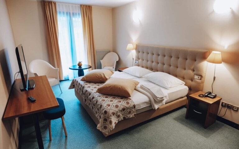 This family-run hotel is set in the heart of the Soca Valley in the history-filled town of Kobarid. Guest rooms are simple but nicely furnished and the staff is very welcoming. The hotel's restaurant specializes in fish and seafood (try the squid ink risotto!).