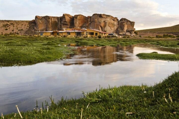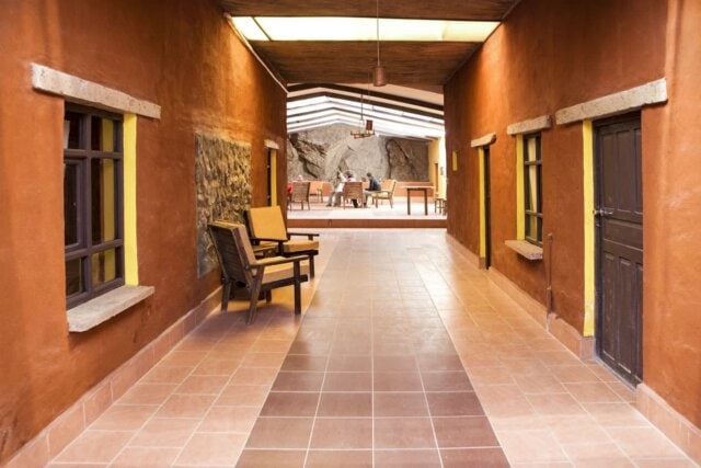 The cozy 12-room Hotel Jardines de Mallku Cueva is built into a rock face and nestled at the base of magnificent boulders that jut out from the valley floor. Guestrooms are rustic but comfortable with beds covered in thick blankets, and the lobby is a welcome gathering place with ample seating. Meals are simple but satisfying and the friendly staff is welcoming.