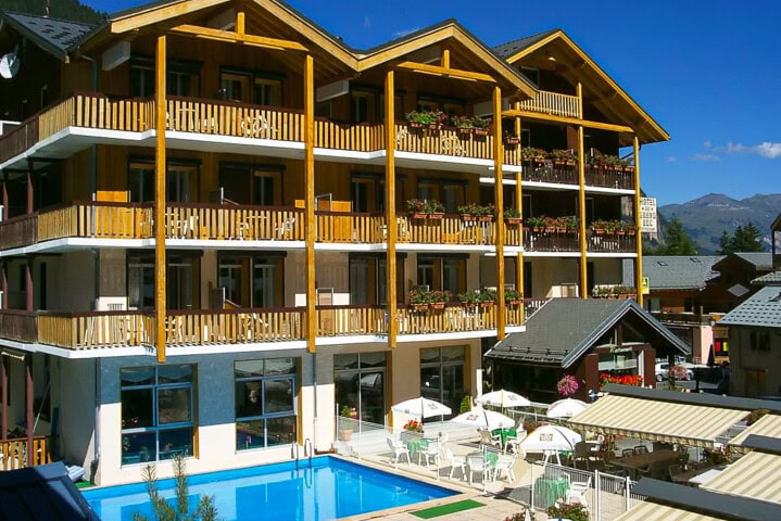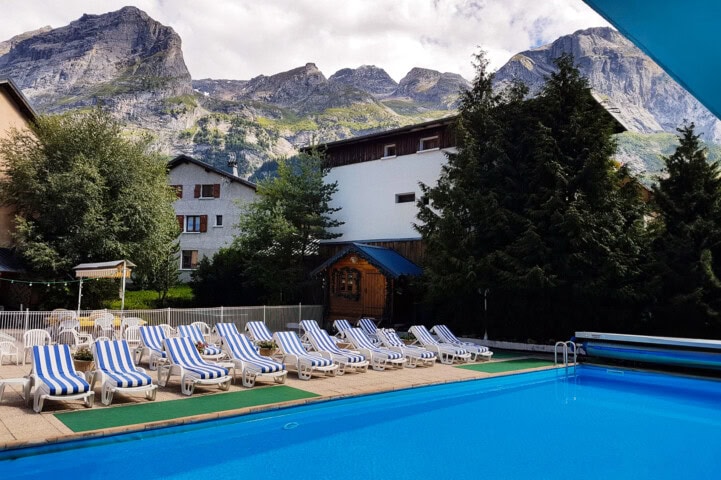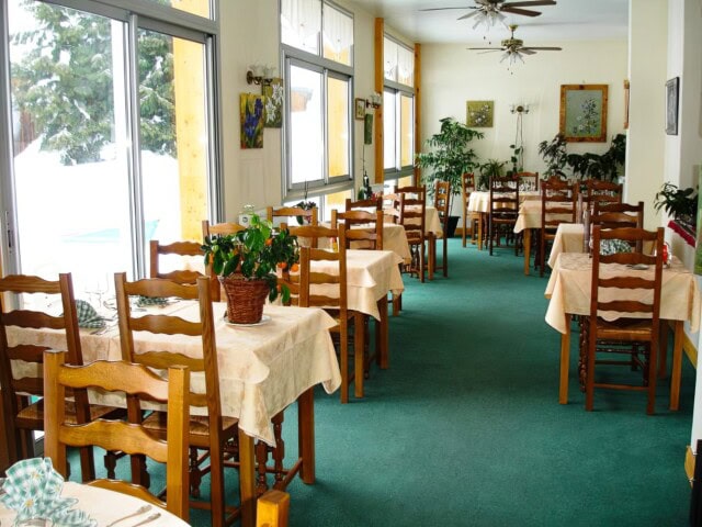 This welcoming hotel has rustic charm and a friendly staff. Rooms have a log cabin feel, with private balconies overlooking the town. After a day on the trail, relax in the reading room with a fireplace or have a drink at the hotel bar. If you have time, enjoy a number of outdoor activities including lawn chess, ping-pong, swimming in the indoor or outdoor pool, and there's even a private tennis court.