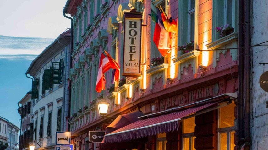 The only hotel in the medieval district of the tiny town of Ptuj, the Mitra is housed in a cozy historic building that offers simple but comfortable rooms. There's a cafe-bar downstairs and the hotel offers a small spa as well as a wine cellar.