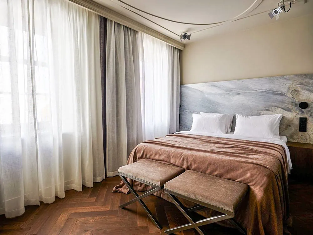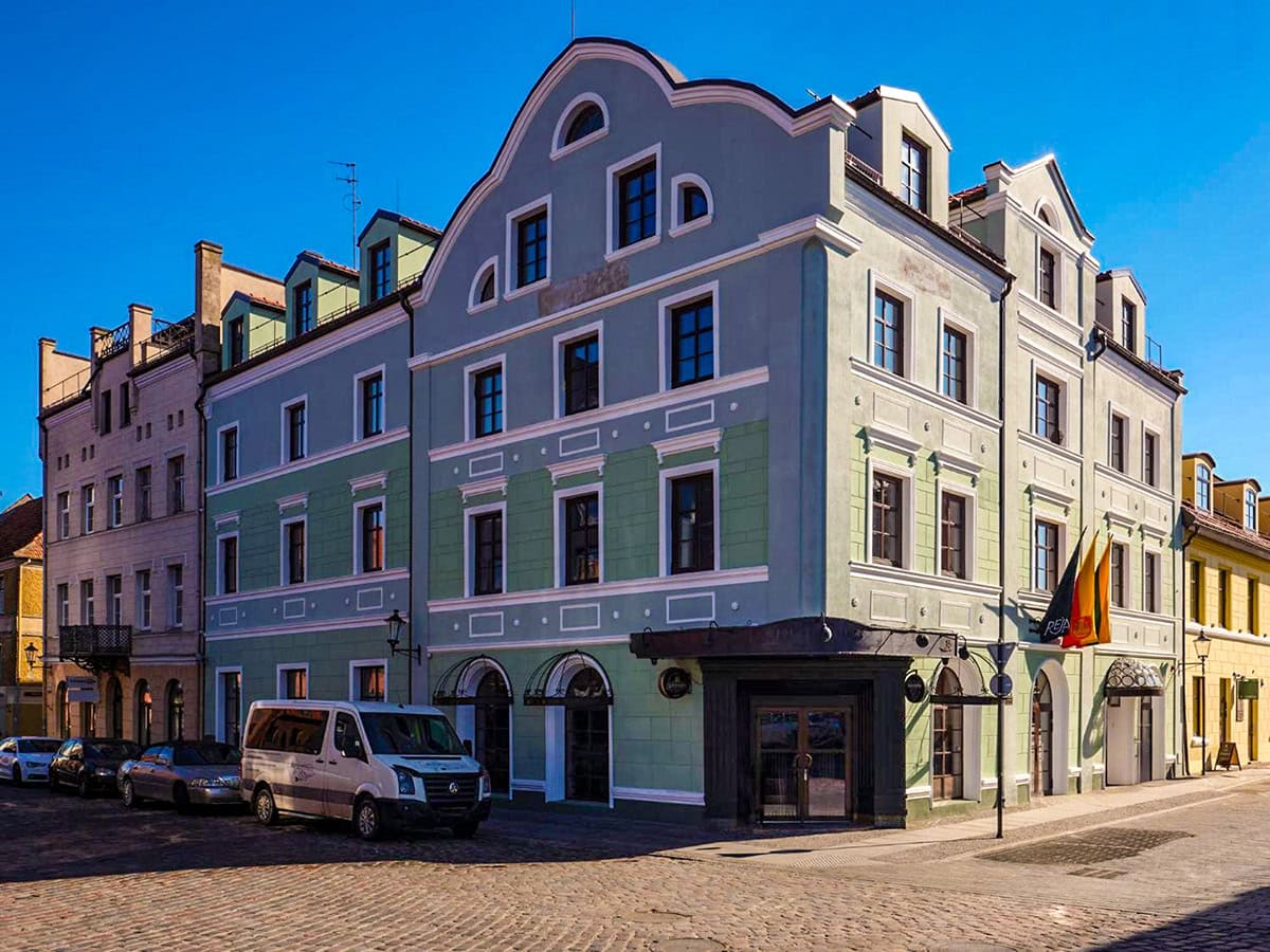 The Reja is in the heart of Klaipeda’s Old Town, surrounded by shops and restaurants and just a two-minute walk to the ferries that take you across the lagoon to the Curonian Spit. The hotel’s Otto Restaurant and Fat Cat gastro-pub bar are popular spots.