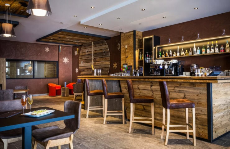This 83-room hotel sports an alpine character with a contemporary twist. Each room features a balcony, and the ones we stay in offer views of the nearby ski slopes. Onsite amenities include a restaurant, bar, indoor swimming pool, spa with sauna and hammam, and a fitness area. The staff is kind and efficient.