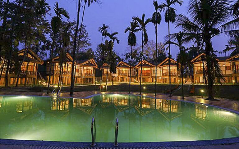 Infinity Resort Kaziranga has 16 simple cottages scattered around its peaceful grounds. Each cottage has a balcony overlooking the gardens and is crafted using local material when possible, including thatched roofs and teak furnishings. There is a swimming pool and a small pond for a nature walk.