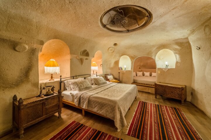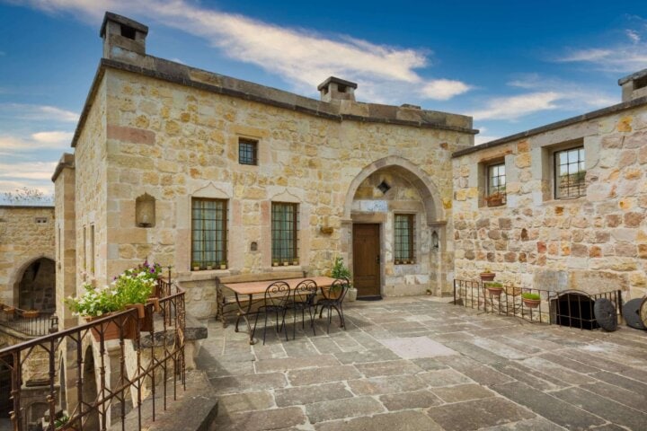 With views of Uchisar Castle on one side and the magnificent valley on the other, this boutique hotel is a wonderful base to explore the area. Like the name suggests, it is a cave hotel, and guest rooms are very atmospheric with beautiful arched ceilings that are carved right into the rock. Enjoy a delicious breakfast spread (the hotel's co-owner is a renowned chef), and feel free to unwind on the terrace, where you may see hot air balloons floating above the valley, or at the hotel's hamam (Turkish bath).
