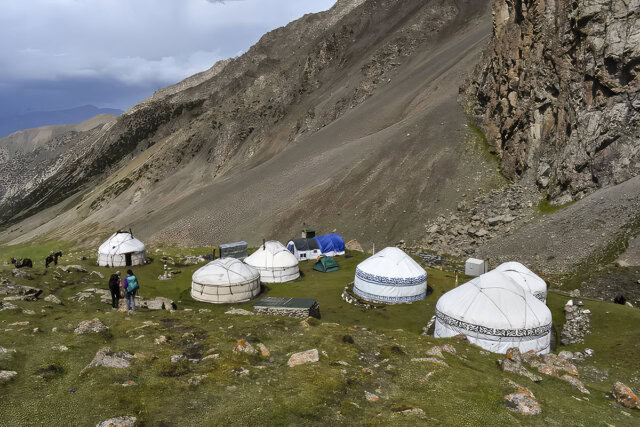 Accommodations vary slightly on these four nights. On the nights of Day 7 and Day 8, we sleep in tents and have use of two yurts for enjoying dinner and breakfast (meals in the yurts are served around a low table with camp mats to sit on). We will set up our own toilet tent for our group. There is also a flush toilet available. For the camp on the nights of Day 10 and Day 11, we sleep in two-person tents, with yurts to dine in, and a shower and flush toilet are available. Water at these camps is solar heated.