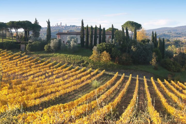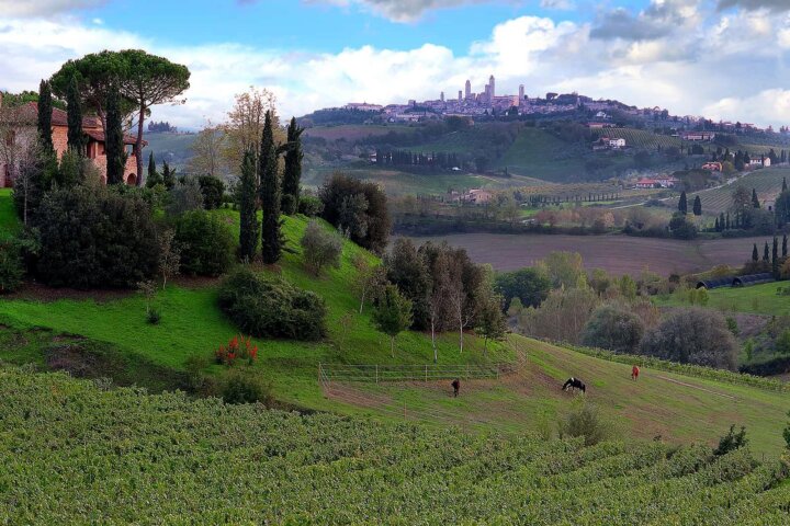 Once a convent, La Mormoraia is now an elegant agriturismo 15 minutes from San Gimignano, perched on a hill with wonderful views of the San Gimignano towers. With a quiet and relaxing setting amid vineyards, the property has 30 guest rooms with typical Tuscan rustic details including handmade terra cotta floors and stone walls. The view of San Gimignano from the breakfast terrace and swimming pool is magical and the onsite restaurant serves excellent fresh Tuscan cuisine.