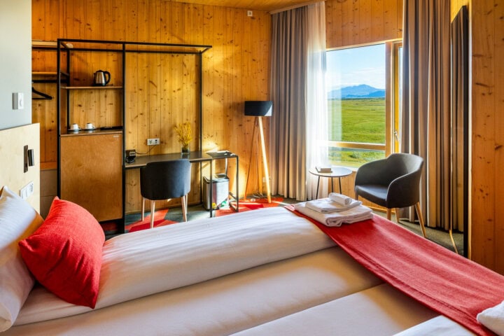 This cozy hotel feels like it’s in the middle of nowhere and has amazing mountain views—it’s the perfect location for hikers! Comfortable guest rooms have a small seating area, and there is a lovely outdoor sauna to relax in. The staff is kind and efficient.