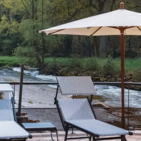 Nestled at the bottom of the ravine that it shares with the stunning village of Conques, this small hotel-restaurant occupies a restored 18th century water mill on the banks of the Dourdou River. It is owned by a passionate young chef who received his Michelin Star two years ago and serves cuisine that is traditional and creative at the same time. The guest rooms are spacious and well appointed, and the charming living room is a perfect place to sip an Armagnac by the fireplace!