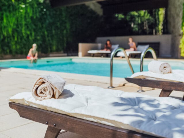 Set in the heart of the medieval district of Figeac, this hotel is a living treasure—it’s been in the family of the Viguiers du Roy for four centuries! Enjoy 21st century comfort and style as you stroll from the garden to the terrace, sip a drink in the bar overlooking the inner courtyard, take a refreshing end-of-the-day dip in the outdoor pool, or simply relax in your comfortable guest room.