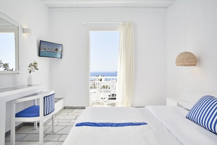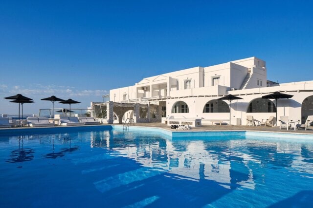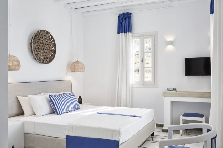 Perched on a hillside overlooking the blue Aegean Sea, this hotel is just a short stroll from the beach and a few minutes' drive from the center of town. Blending traditional Cycladic architecture with the natural environment, guest rooms are bright and modern, and feature balconies with iconic views of the sea. Amenities include an outdoor swimming pool and an onsite restaurant serving great breakfasts.
