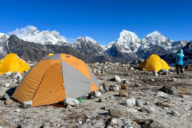 In the Nangpa La Valley, you are accompanied by our experienced team of Sherpa trail guides, and all your gear is carried for you (leaving you free to hike with just a daypack to hold your camera, water bottle, rain jacket, etc.). Camp amenities include a dining tent with a table and chairs (with backs), meals prepared by our trained staff, and a toilet tent. Our camp crew takes care of all camp chores, including bringing tea or coffee to your tent each morning and providing picnic lunches each day at a scenic spot along the trail. Accommodations are in sturdy mountain-style tents. Sleeping bags, pads, and liners are provided.