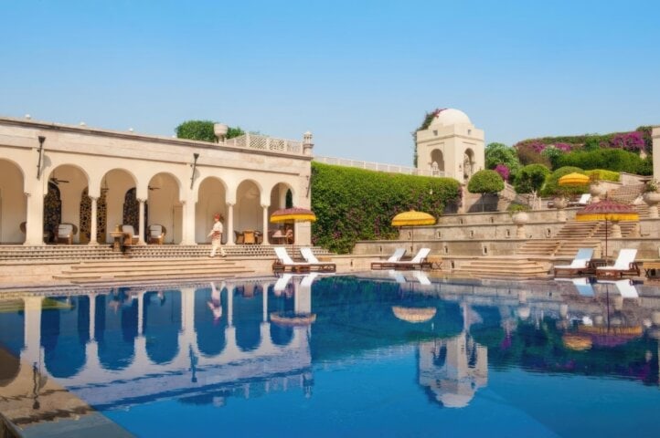 The Oberoi Amarvilas has well earned its long lists of awards and accolades, and it's the place to stay in Agra. Located less than a half-mile from the Taj Mahal, you can't find a hotel any closer, and each guest room has a marvelous view from its balcony of the Taj rising above a blanket of green trees. The hotel's sandstone arches, manicured gardens, and serene pools and fountains reflect the opulent style of the Mughal emperors. This is an incredible place to return to after a day of exploration at the Taj and Agra's other sites.