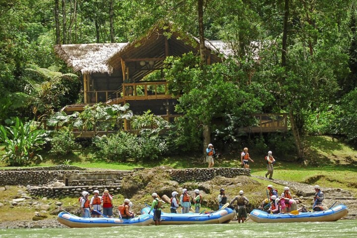 Set on the banks of the Rio Pacuare, this luxury lodge is an ideal base from which to explore Costa Rica's verdant rainforest environs. Twenty guest suites spread over the property ensure total privacy, and offer a comfortable retreat when not out exploring. We stay in the Garden Suites (upgrades are available), which offer private decks with hammocks, en suite bathrooms, heated indoor and outdoor showers, and ceiling fans. They are open to the air, but have screened walls. Lush forest grounds lie alongside the river, and there are nearby trails and a stunning infinity pool with views overlooking the river. All energy comes from solar panels and hydroelectric turbines in streams on the property. Wi-Fi is available everywhere. The lodge employs many local Cabécar indigenous people who hike into the river canyon from their traditional villages each day. Pacuare Lodge is a member of National Geographic Unique Lodges of the World.