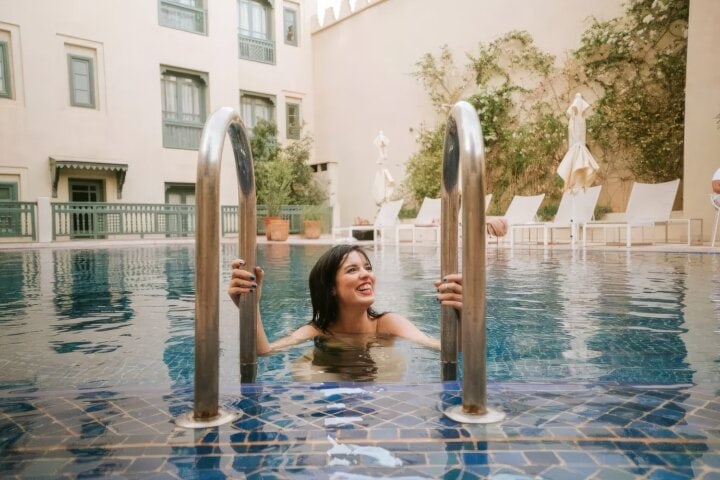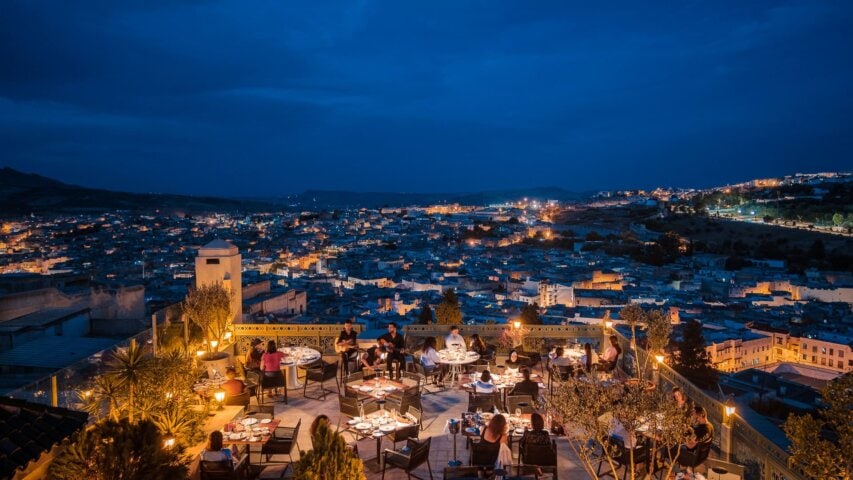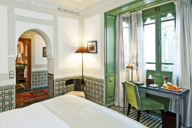 Perched on a hill with sweeping views of 12th century Fez Medina, the Palais Faraj Suites & Spa is a tranquil gem of a hotel revealing exquisite architecture and spacious rooms. You'll be welcomed with intricate moucharabiehs and marble-tiled walkways from the moment you step foot in the lobby. Every guestroom is a suite, and each has a colorful mix of traditional and modern touches that highlight Moroccan culture. Spend time in their peaceful courtyard, relax by their pool and spa, or enjoy a cocktail at their picturesque bar while watching the desert sunset.
