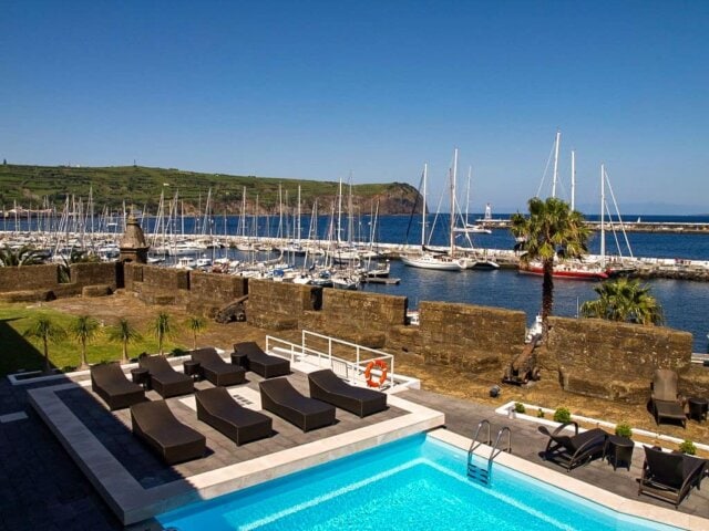 The Pousada Forte is a restored fortress set along a promenade on Horta’s port. It offers comfortable rooms overlooking the harbor and a great swimming pool. The views of Pico Island are breathtaking.
