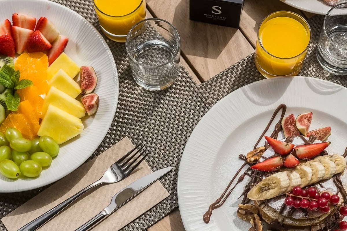 Set in a quiet location on the seafront with the Serra de Tramuntana as a dramatic backdrop, this hotel offers a relaxed and inviting atmosphere. We stay in clean, modern rooms featuring a terrace with views over the bay. Amenities include a small gym and outdoor swimming pool, and if you have the time, you can treat yourself to a luxury spa treatment or massage in the wellness center. The onsite restaurant serves Mediterranean cuisine inspired by the sea.