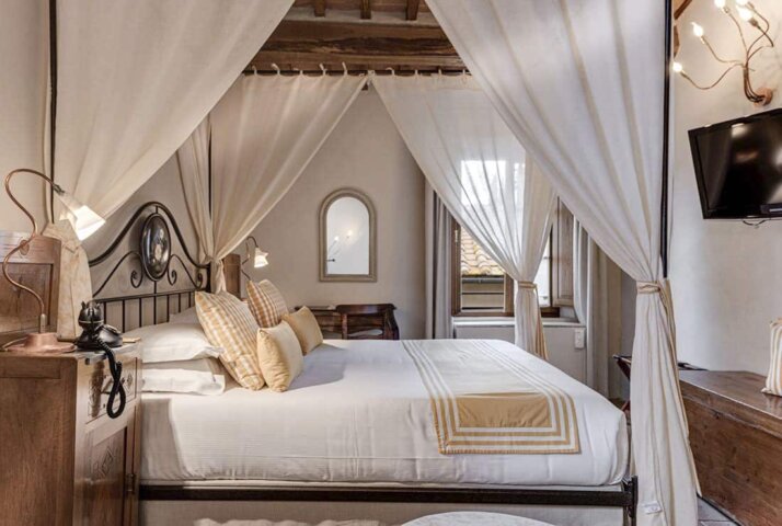 This small hotel, a beautifully restored 15th century building with old world charm, is a nice surprise in the heart of the unspoiled village of San Quirico. Guest rooms are decorated in Tuscan style, with wooden beamed ceilings, antiques, and terracotta floors. Relax at the end of the day in the walled garden of olive trees, grape arbors, and fruit trees, then head out for dinner at one of the town's many restaurants or at Al Vecchio Forno, the hotel's own restaurant, renowned for its superb Tuscan specialties.