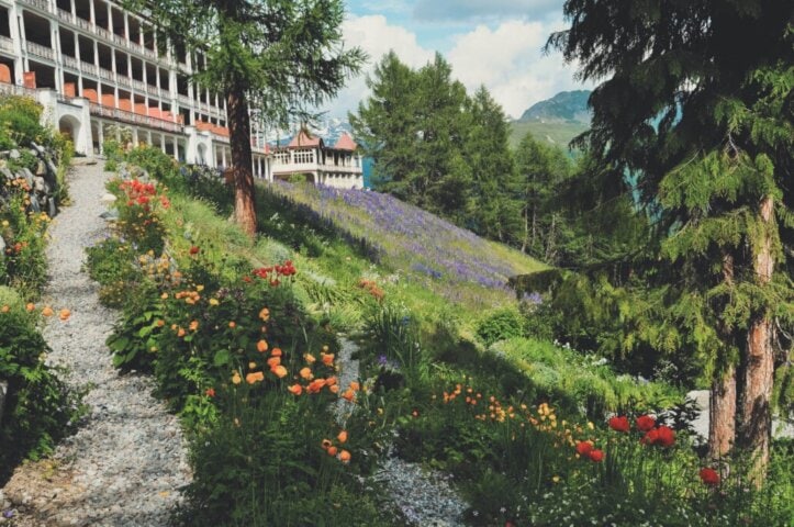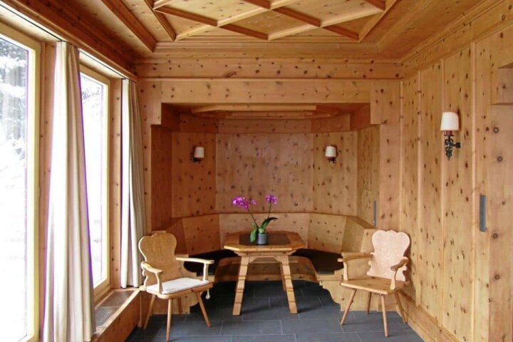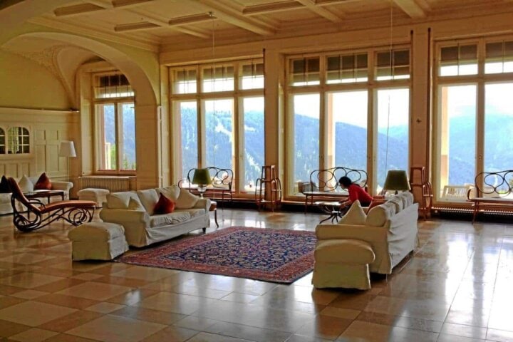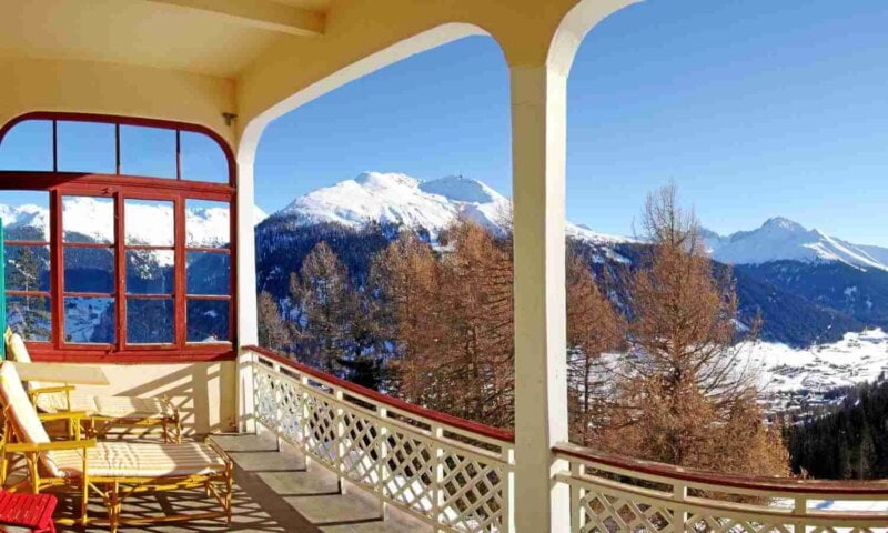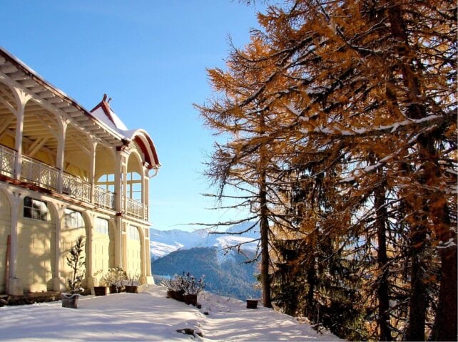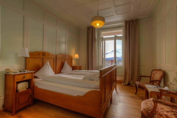 This mountain “aerie” sits on a sunny shelf high above the resort town of Davos, and is reached by a short funicular ride up the mountainside. Its picture-postcard alpine views and pure mountain air are complemented by the staff's warm and friendly Swiss hospitality. Guest rooms evoke the charm and feel of turn-of-the-century Davos, with the added pleasure of modern comforts (but no TV). Be sure to sit on the terrace with a drink and catch the wonderful afternoon light.