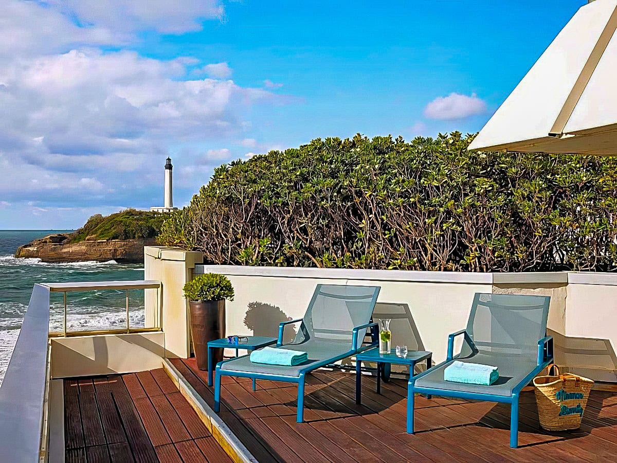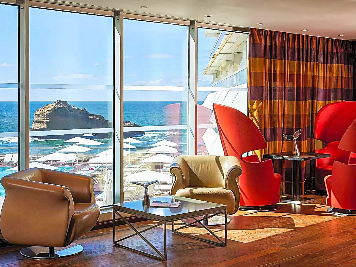 This 126-room seaside retreat overlooks one of the most beautiful beaches of the Basque Coast, and each guestroom has a terrace with views of the ocean or the town of Biarritz. Amenities include a spa offering personalized treatments, a panoramic outdoor seawater pool, an indoor seawater pool, and a fitness center.