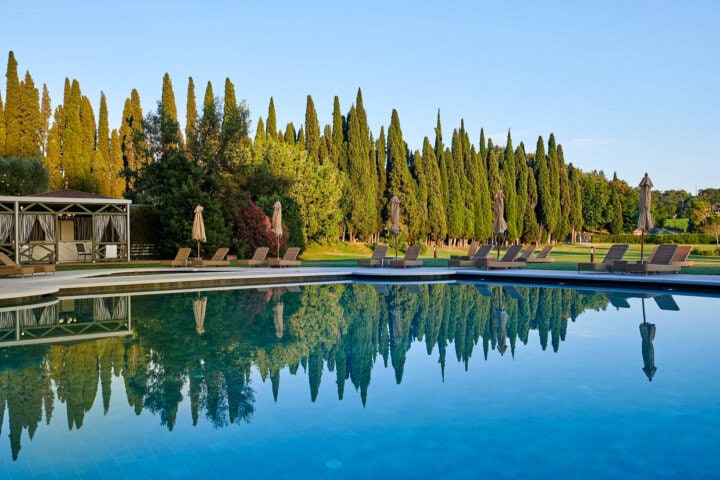With a superb location, classic landscaping, private vineyards, two restaurants, a bar-terrace, and a manor-house atmosphere, the Cordevigo is a gem at the center of the Bardolino and Valpolicella wine region. The swimming pool is a great place for an apertivo.