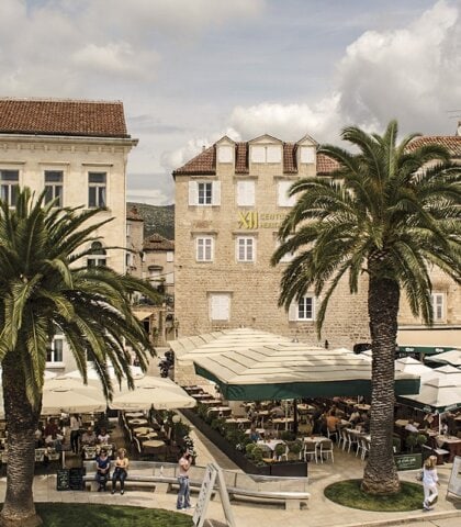Located on the waterfront promenade in medieval Trogir, the 15 rooms of this quaint hotel are individually designed, each with modern amenities and private bathrooms. Breakfast is served in the dining room or out on the terrace where you can enjoy the breeze from the Adriatic as ships come and go.