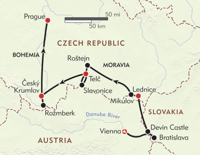 In the heart of Central Europe, we invite you into a walker’s paradise of hilltop castles, deep woodlands, and gorgeous Baroque towns. We discover this realm on castle-to-castle hikes across poppy-filled meadows and through fern-blanketed forests. Between hikes, we’ll explore the Renaissance villa at Lednice, medieval Telc, and its wedge-shaped Renaissance square, and magical Ceský Krumlov (with a private backstage tour of the town’s 17th century theater). Our expert Trip Leaders bring us an insider’s perspective and a wonderful journey through history, with a grand finale in magical Prague.